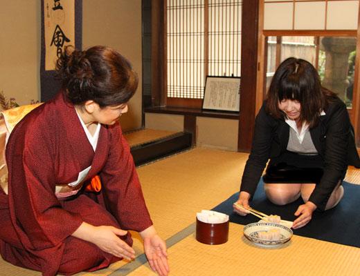 茶道では常に周囲の方に「お先に」「どうぞ」といったやりとりがあり、挨拶やお辞儀の仕方が自然と身に付きます。